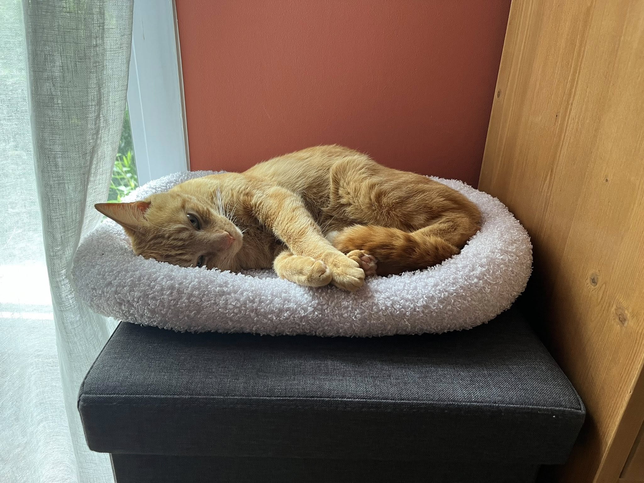 C'est un chat calme et câlin, de plus en plus joueur. Curieux de l'extérieur, il découvre peu à peu le confort de la vie dans un foyer, et apprécie passer du temps avec sa famille d'accueil.