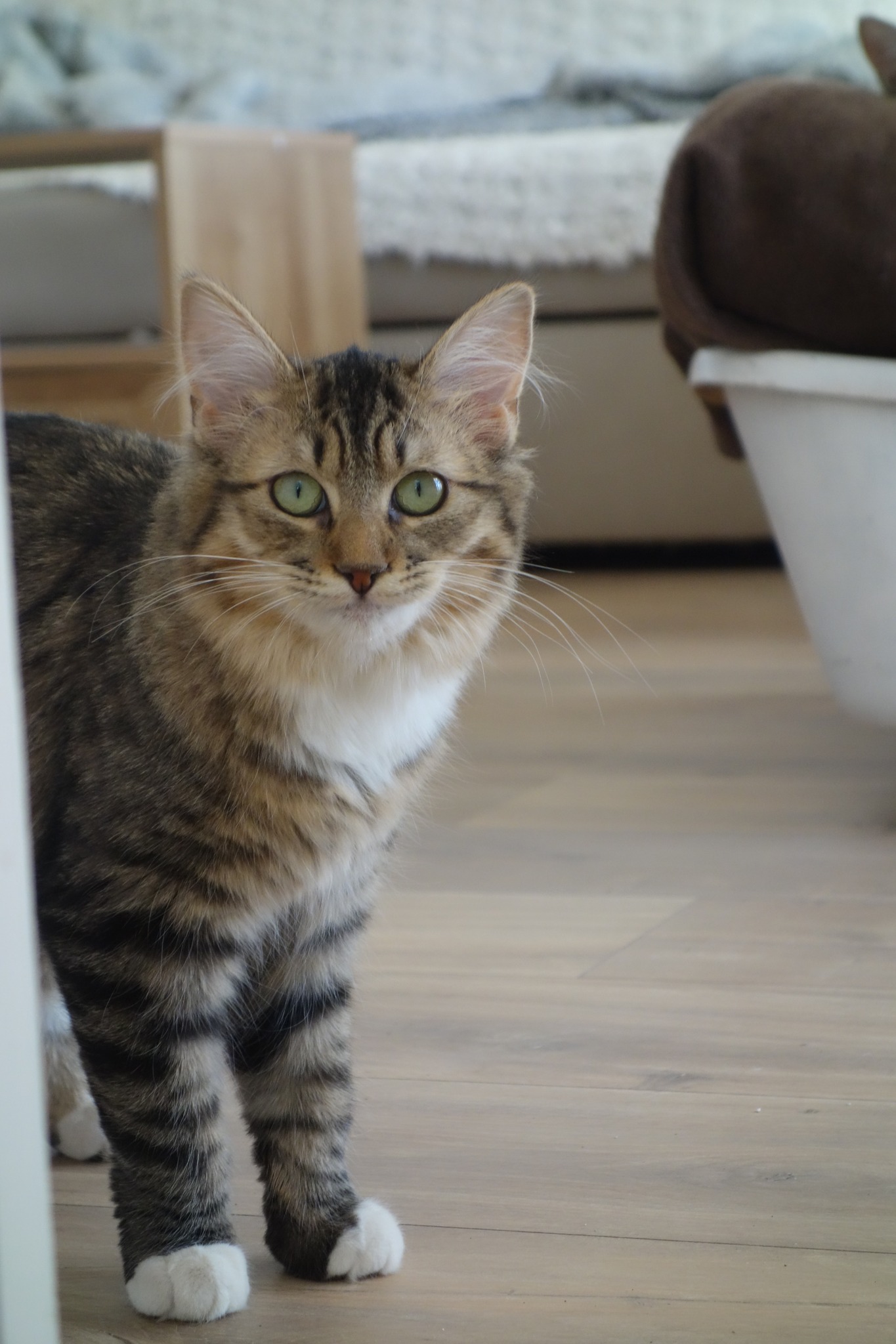 Syldra est une jeune chatte au caractère bien trempé ! Maligne, c'est la plus vive de la portée. Elle doit encore poursuivre un travail de socialisation avec les humains. Elle apprécie déjà quelques caresses même si il lui arrive encore de se montrer surprise. Si elle l'a décidé, elle saura exiger des moments de câlins.