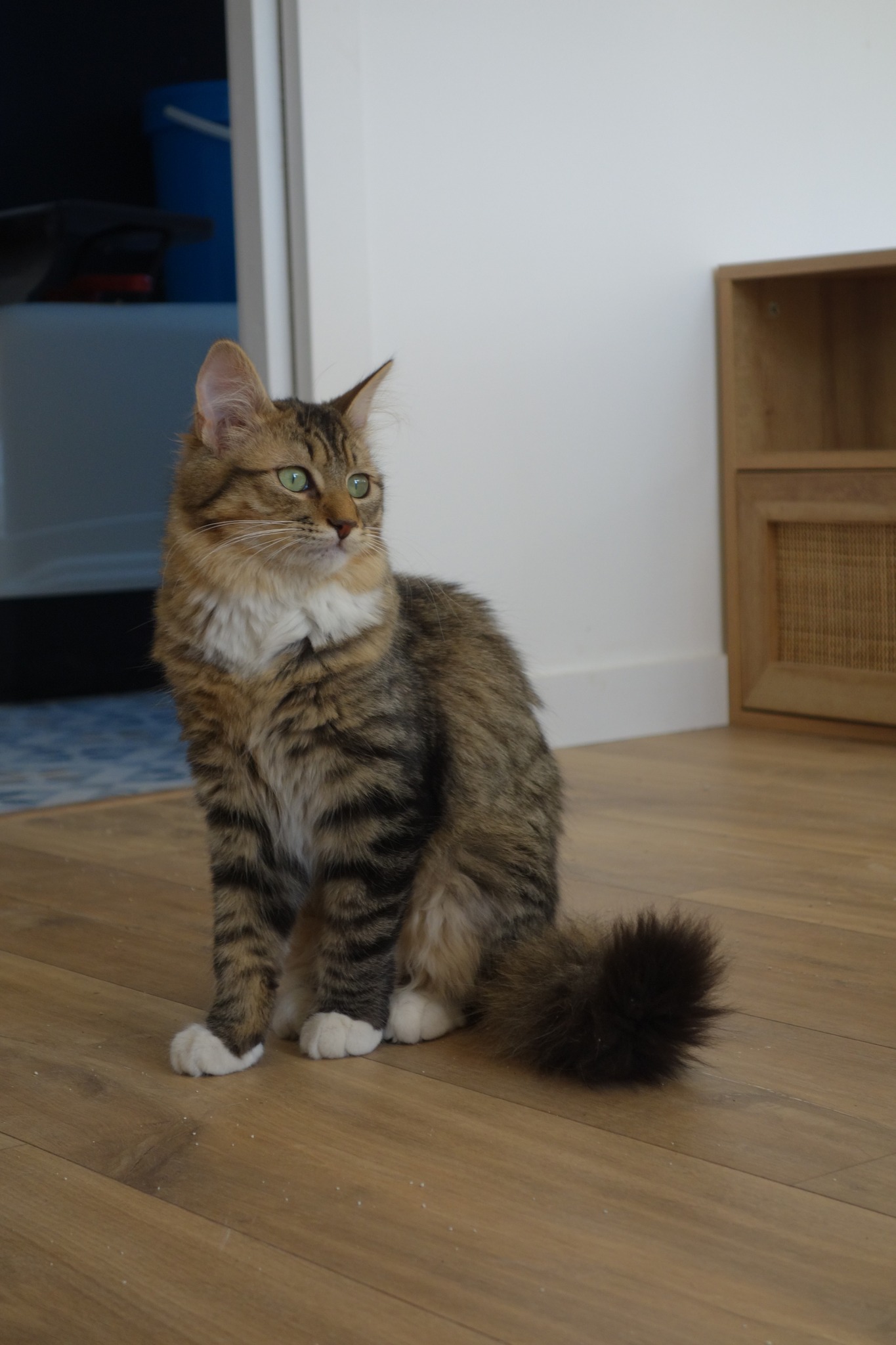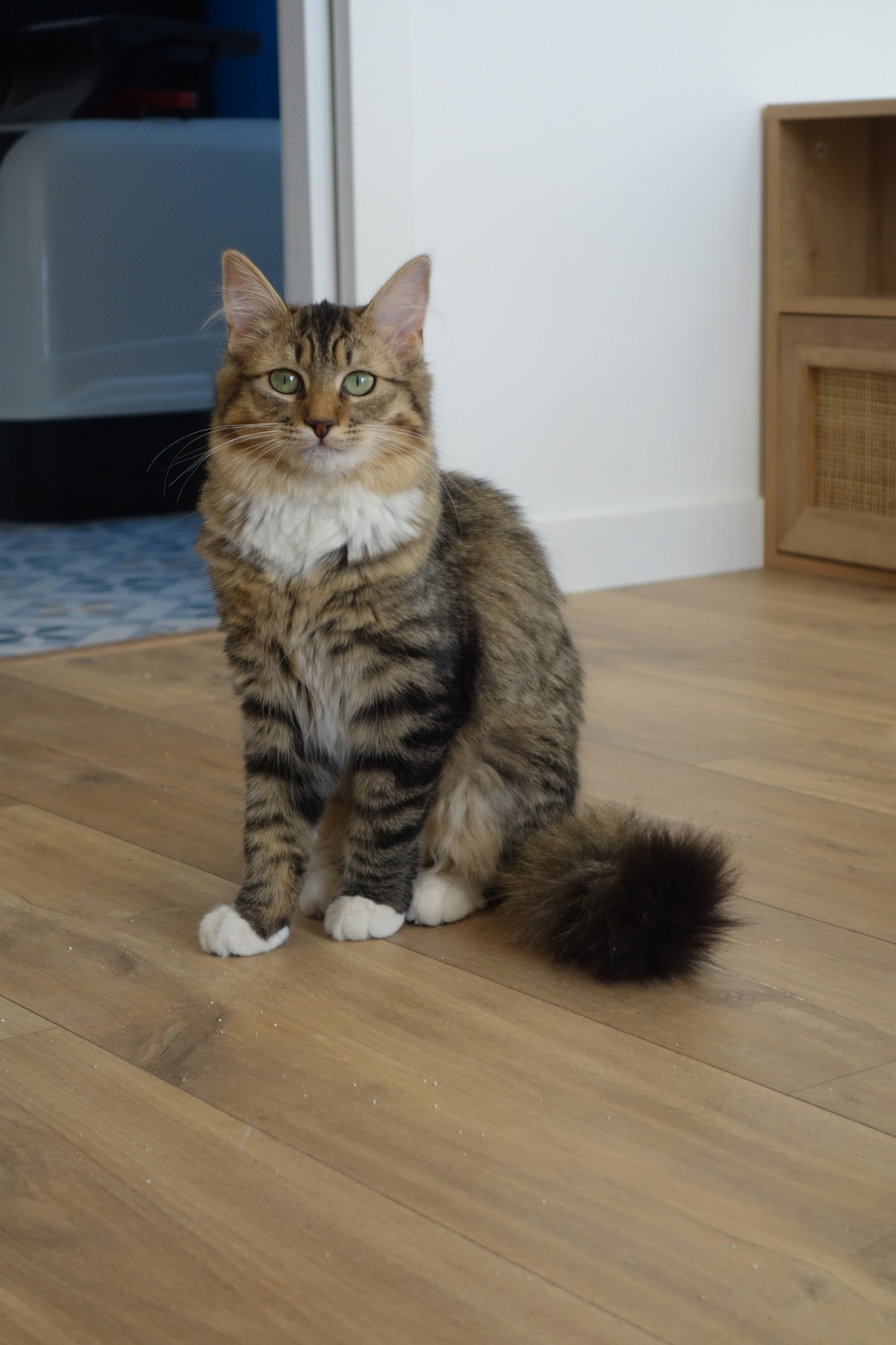 Syldra est une jeune chatte au caractère bien trempé ! Maligne, c'est la plus vive de la portée. Elle doit encore poursuivre un travail de socialisation avec les humains. Elle apprécie déjà quelques caresses même si il lui arrive encore de se montrer surprise. Si elle l'a décidé, elle saura exiger des moments de câlins.